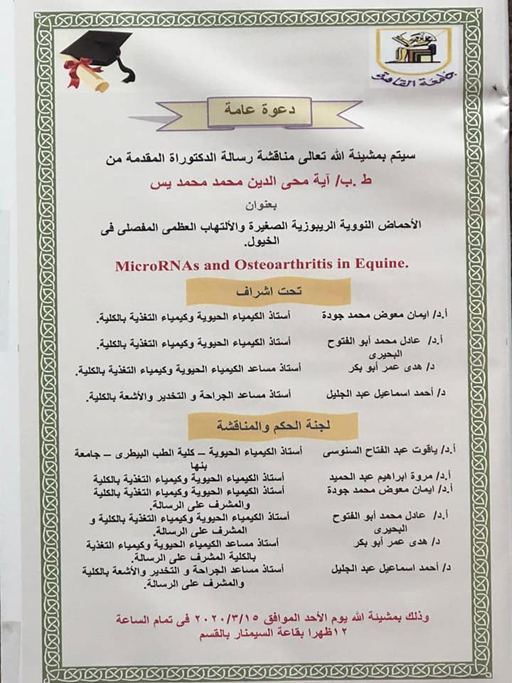 تنظم الكلية يوم الثلاثاء ندوة ثقافية توعوية صحية للتعريف بمرض الكورونا أعراضه والوقاية منه تحت عنوان «فيروس كورونا الجديد ....الأعراض و طرق الوقاية»، وذلك يوم الثلاثاء 10/3/2020 الساعة 11:30 بمدرج 4.
