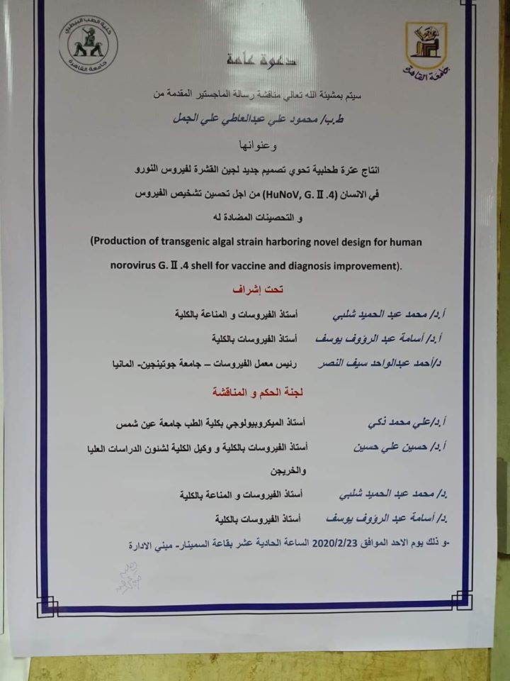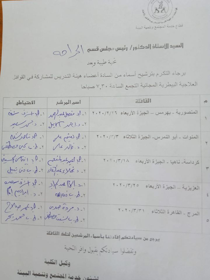 جتمعت اليوم الخميس الموافق 20 فبراير 2020 فى تمام الساعه الحادية عشرة صباحا...لجنه اخلاقيات استخدام الحيوان فى التعليم الطبى البيطري والبحث العلمى VET-CU IACUC برئاسه ا.د.فتحى فاروق....حيث قامت اللجنة بمناقشة البروتوكولات الواردة خلال شهر يناير وفبراير 2020 والتى بلغ عددها 30 بروتوكول.. كما تم توزيع البروتوكولات الوارده على الساده اعضاء اللجنة ليتم مناقشتها بالجلسة القادمة......وتقرر دعوة عدد من الساده اعضاء هيئه التدريس للاستعانة بهم فى اعمال اللجنة طبقا لقرار انشاء اللجنه المعتمد من مجلس جامعة القاهرة...