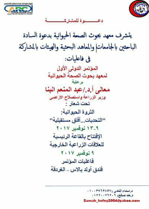 المؤتمر العلمي الأول لمعهد بحوث صحة الحيوان 9-13 نوفمبر 2017