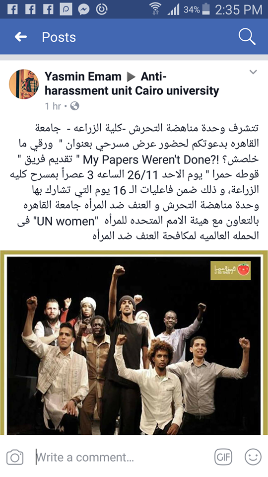إحتفال وحدة مناهضة العنف ضد المرأة بجامعة القاهرة وذلك بمسرح كلية الزراعة