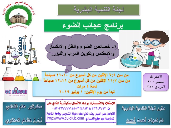 الخميس الموافق 18يوليو بالمركز العلمي بالأزبكيه