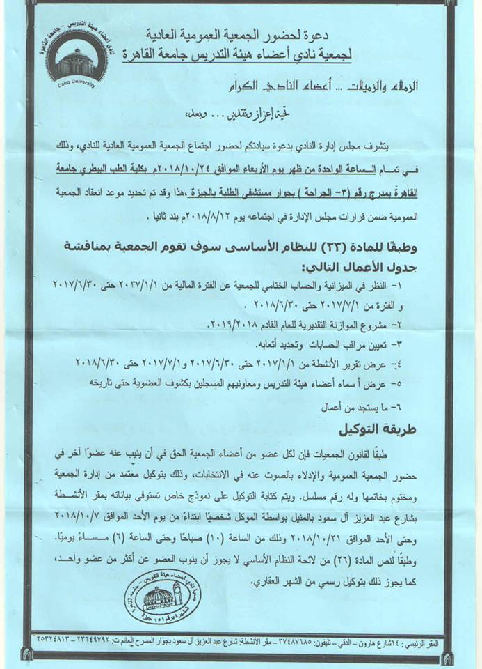 وذلك فى تمام الساعه 11 صباحا بقاعه مجلس الكليه "القديم"...برئاسه ا.د.فتحى فاروق...وستبدأ اللجنه فى تلقى طلبات التقدم "applications" اعتبارا من 1 نوفمبر 2018...وذلك من خلال آليه محدده سيتم الاعلان عنها لاحقااااا....