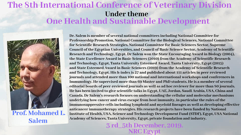 Register now in the 8th International Conference of Veterinary Division that will be held at National Research Centre, Egypt (3rd _5th December, 2019)