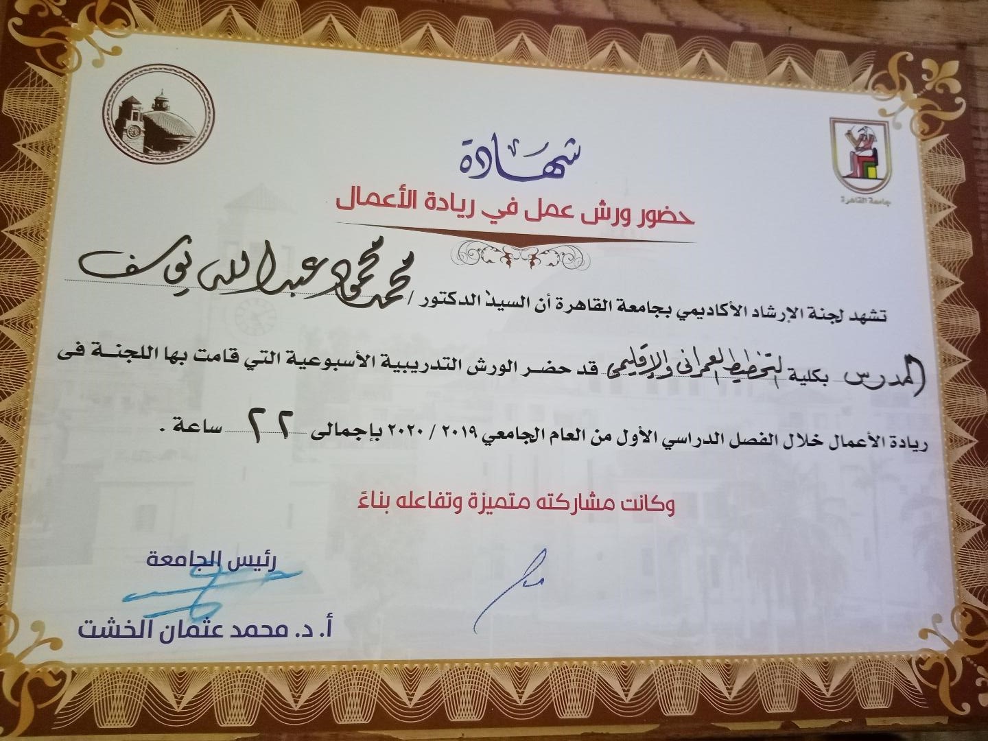 | شهادة شرفية من المنتدى الوزاري العربي الثالث للاسكان و التنمية الحضرية- الإمارات - اكتوبر 2019م.pdf | 1.91 MB |