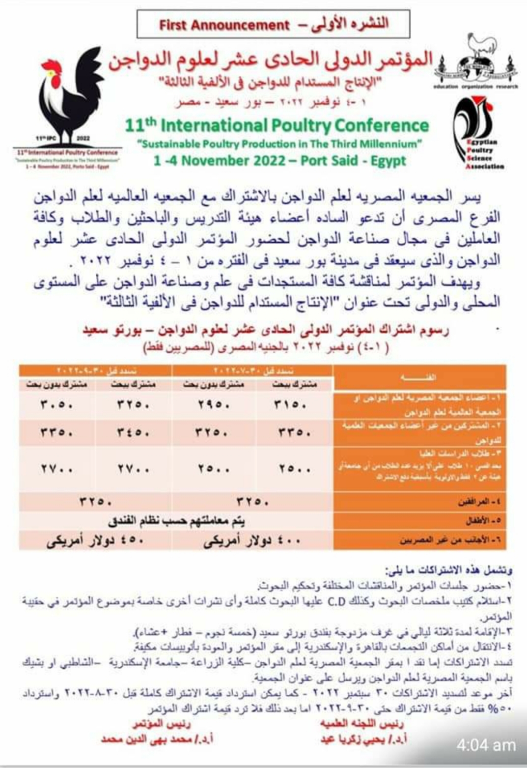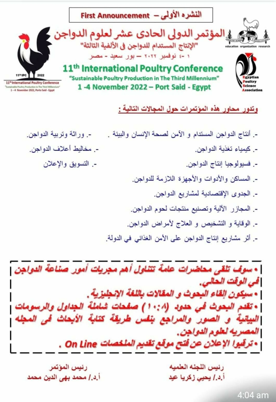 11th International Poultry Conference